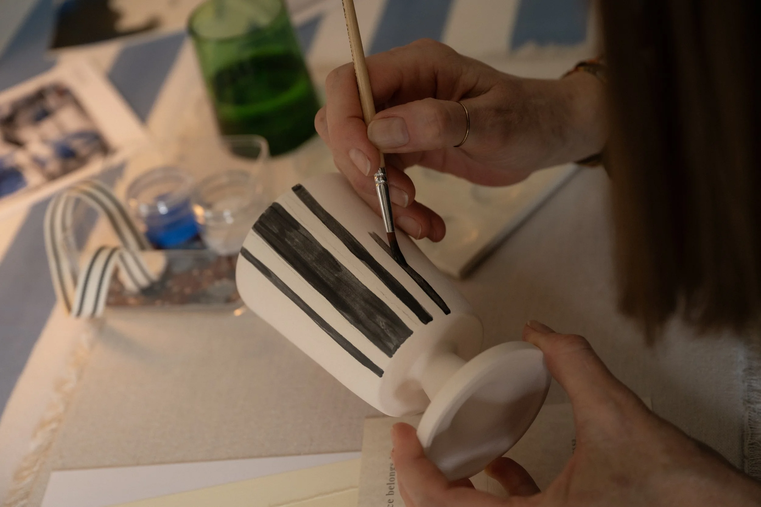 A two-hour gathering where you’ll paint a ceramic piece, sip champagne, and let time unfold. Your piece, later fired and returned to you.